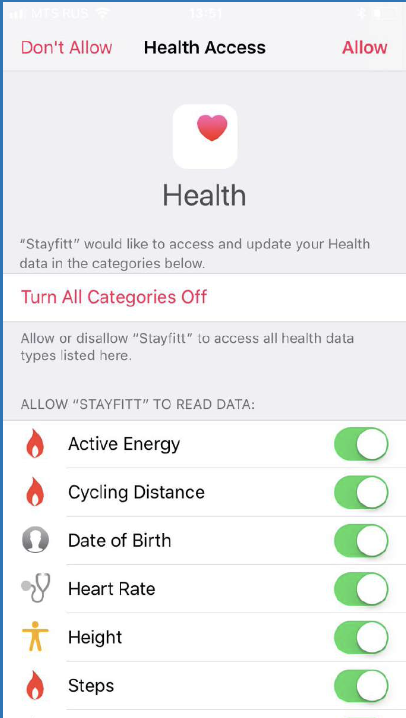 Проверьте, что вы открыли доступ Sayfitt к приложению Apple Health. Проверьте, что в Apple Health активированы все типы активностей Проверьте, что Apple Health отправляет данные в приложение Stayfitt.